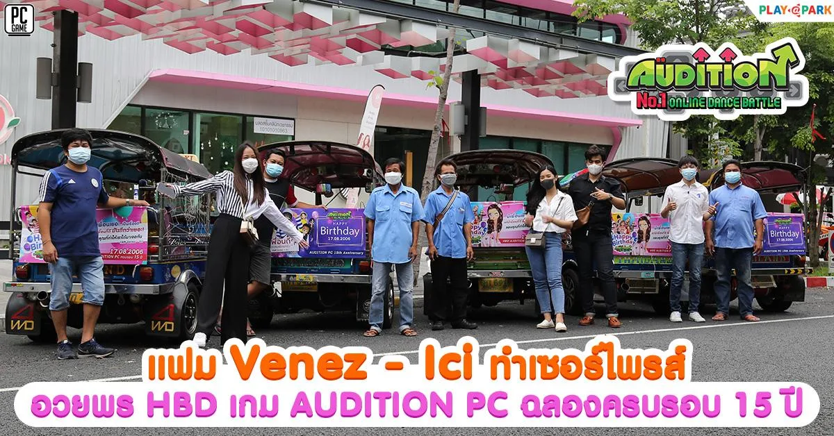 ชมบรรยากาศน่ารักๆที่น้องๆแฟม Venez – Ici ไปตรวจงานเองได้ที่ https://bit.ly/3yiYNJ7 และสามารถติดตามรายละเอียดแคมเปญฉลองครบรอบ 15 ปี รวมถึงข่าวสารและกิจกรรมอื่น ๆ ที่น่าสนใจ ของเกม AUDITION PC ได้ทางหน้าเว็บไซต์ https://AUDITION.playpark.com หรือที่ Facebook Page www.facebook.com/PlayPark.Audition.TH รับรองว่าไม่พลาดทุกกิจกรรมของ AUDITION PC แน่นอน!! เล่นง่าย เล่นฟรี ใช้ Facebook ID เล่นได้เลยทันที ไม่ต้องสมัคร!! โหลดเลยแล้วมาแดนซ์มันส์ด้วยกัน!!